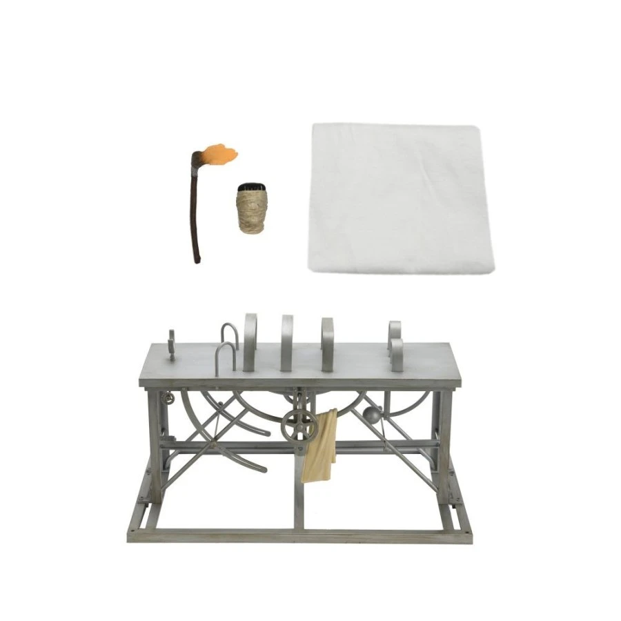 Il tavolo da laboratorio, testa intercambiabile, abiti e torcia per esporre al meglio la Neca Universal Monster Frankenstein’s Monster (VENDUTA SEPARATAMENTE)