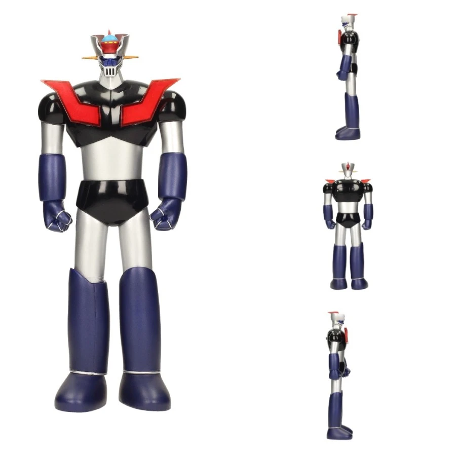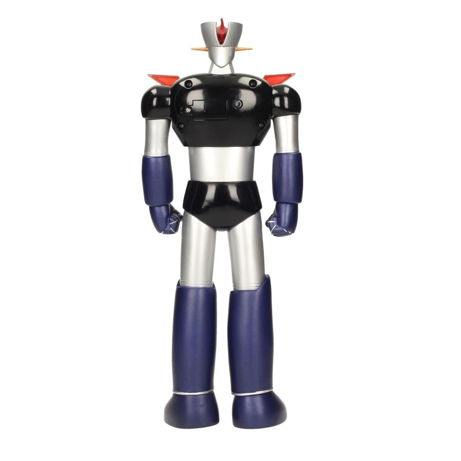 Il robot in PVC di Mazinger Z misura 30 cm, dispone di diverse articolazioni ed è dotato di led luminosi nel petto e negli occhi.
